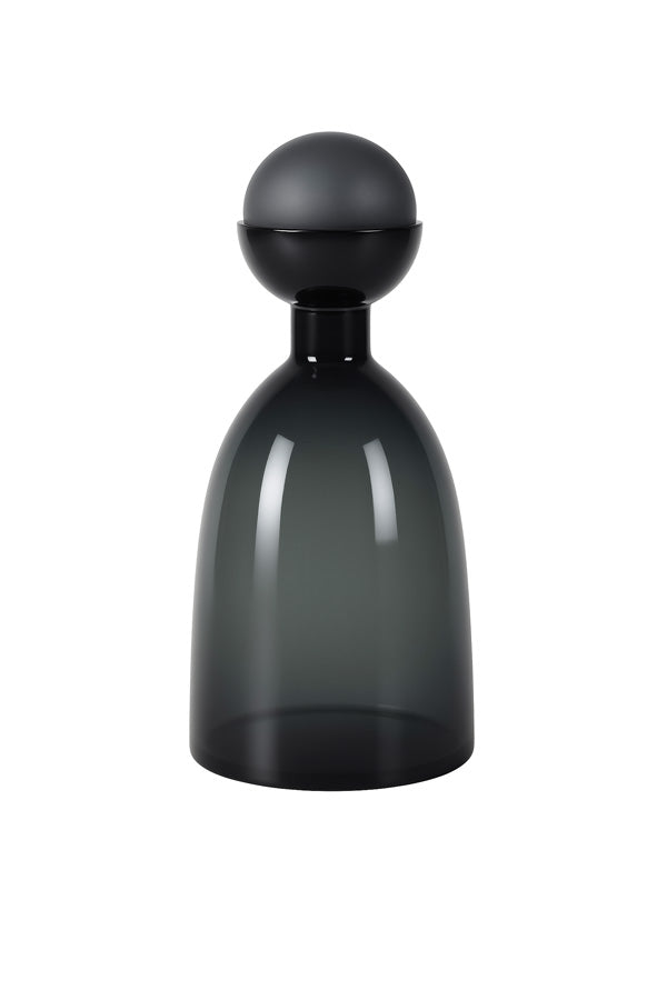 With its matte black spherical stopper, this glass bottle makes a sleek accent piece on a console table or style it on a bar cabinet alongside complementary bar accessories for a polished finish.