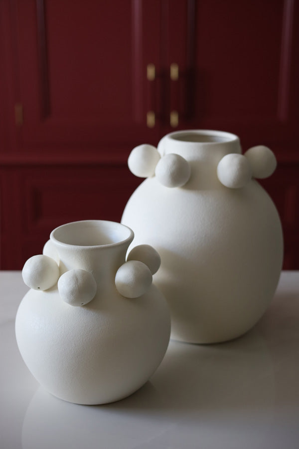 Full of charm and personality, this small white ceramic vase is a genuine mood lifter. Its playful detailing and soft, rounded shape make it an easy piece to love – perfect for a few stems, or simply sitting pretty on a shelf or sideboard.