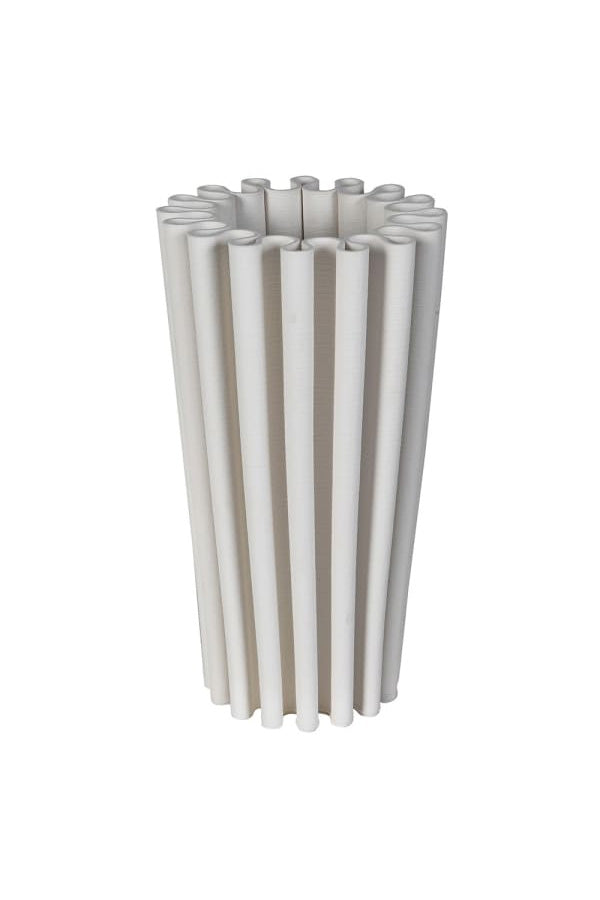 The Small White Athena Vase has a warm white, matte finish; the fluted shape looks sculptural from a distance, but up close, you notice the softer edges that come from 3D printed ceramic, a clever technique that invites a second look. Dry flowers only.