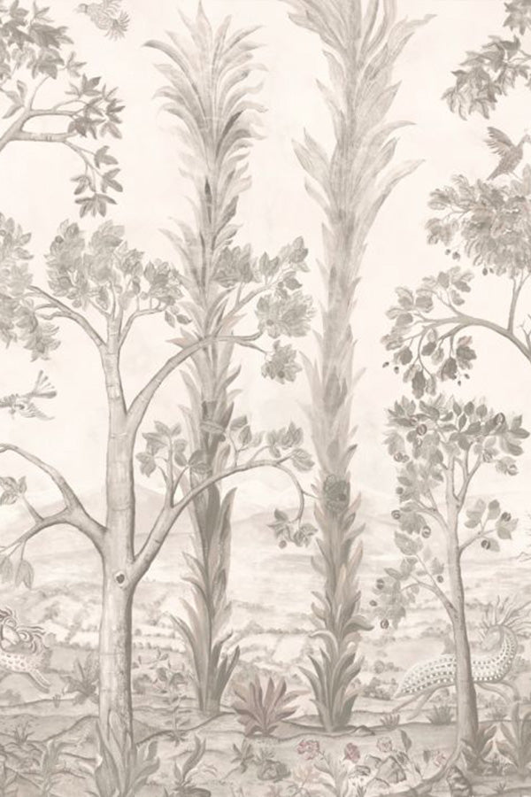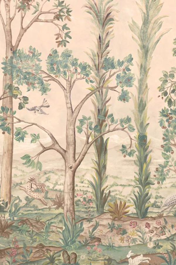 Tall Trees is part of the exclusive Kit Kemp collaboration with GP & J Baker and is a treasured design originally hand-painted by Melissa White. Inspired by a walk through woodland on a misty morning, this enchanting mural brings nature indoors with a whimsical twist. Fantastical birds, rabbits, and dragons hide among bluebells, oak, and horse chestnut trees, creating a magical landscape that feels both timeless and imaginative. Showcased in the Sunset colourway within our showroom, this design is a statement piece for interiors that value individuality, bold design, and the beauty of true craftsmanship.